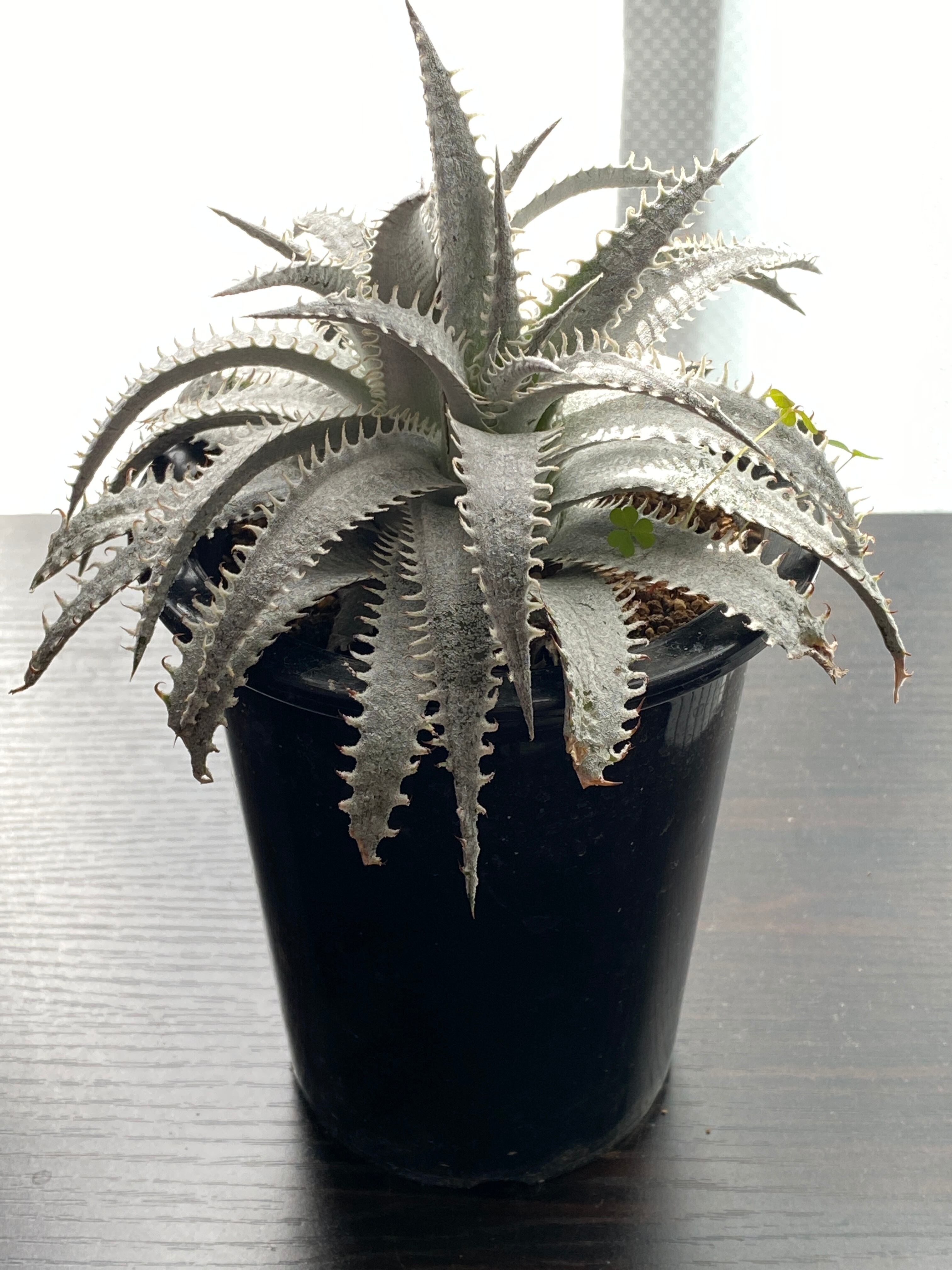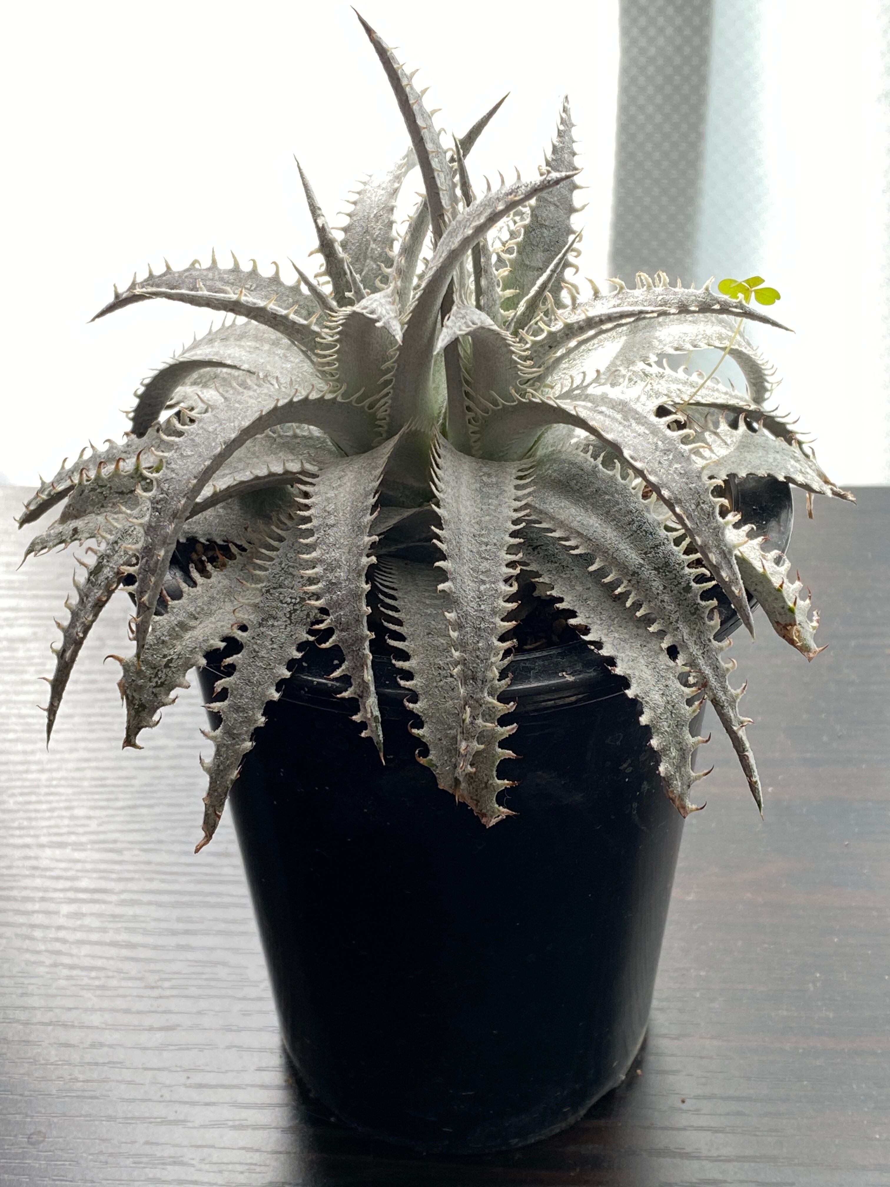 主に南米に自生するディッキアは、暑さ、寒さに強く育てやすい植物です。鋭い棘がワイルドな印象で鉢を移動する際は、要注意です。近年では、ビザールプランツ(珍奇植物)の中でも人気で、交配種のものも多く、ディッキアだけを愛でる愛好家も多いのではないでしょうか。今となっては、品種が不明なのが残念ですが、立派なディッキアです!